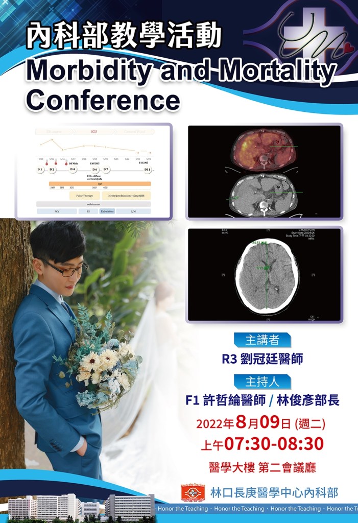 Mortality and morbidity conference 是R3 相當重要的一個試驗,每天查房及值班都會遇到許多個案,從中挑選一個特別具有啟發性的有趣個案,實屬不易。