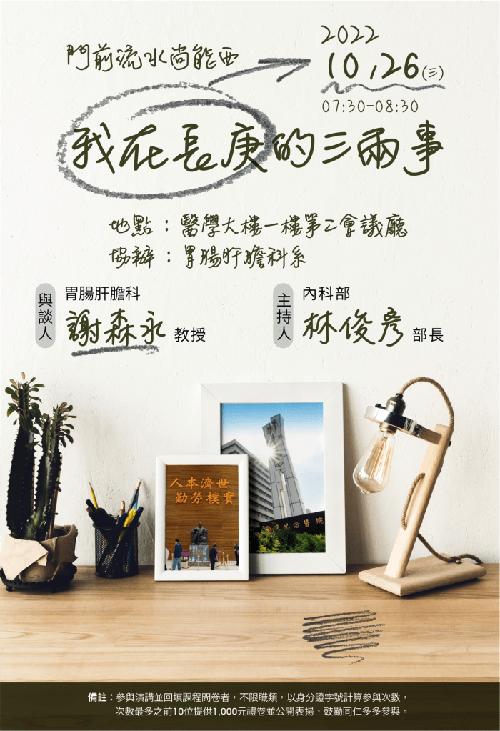 歡迎大家週三起個早,來聽聽謝教授在長庚的三兩事。