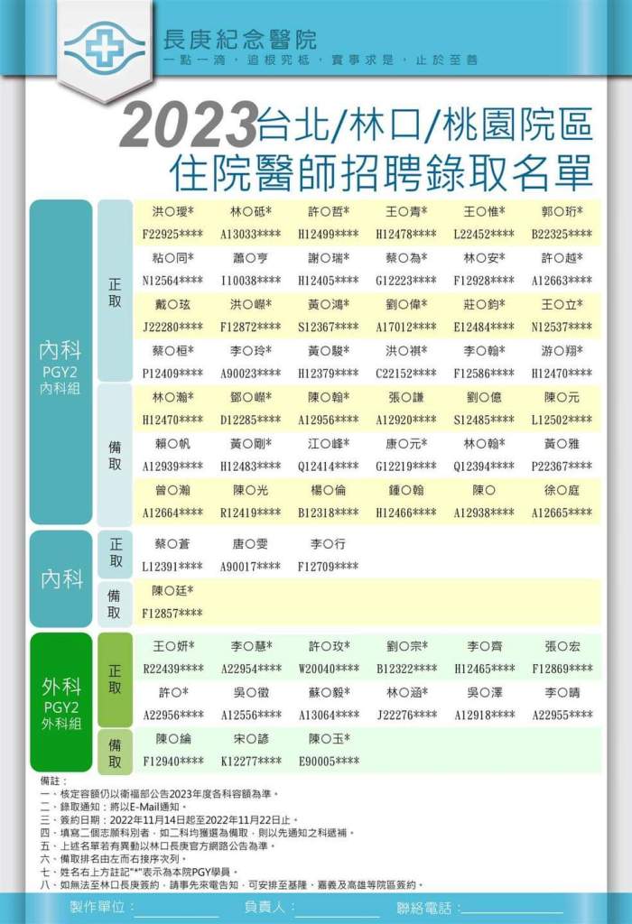 內科部的年度大事–住院醫師招生,終於在榜單公告之日順利結束。先謝謝眾多學弟妹對於林長內科的肯定,此次共計49位學弟妹到考。這次的招生競爭非常激烈,大家都使出渾身解數,讓考官們做決定時傷透腦筋。最終錄取了R2 24位、R1 3位,在此恭喜各位榜上有名的學弟妹,歡迎大家加入林長內科的大家庭。由於競爭者眾,難免有遺珠之憾,我們的兄弟院區桃園分院、土城醫院、基隆院區都還有名額,如果有興趣可以再跟該院區內科部聯繫。