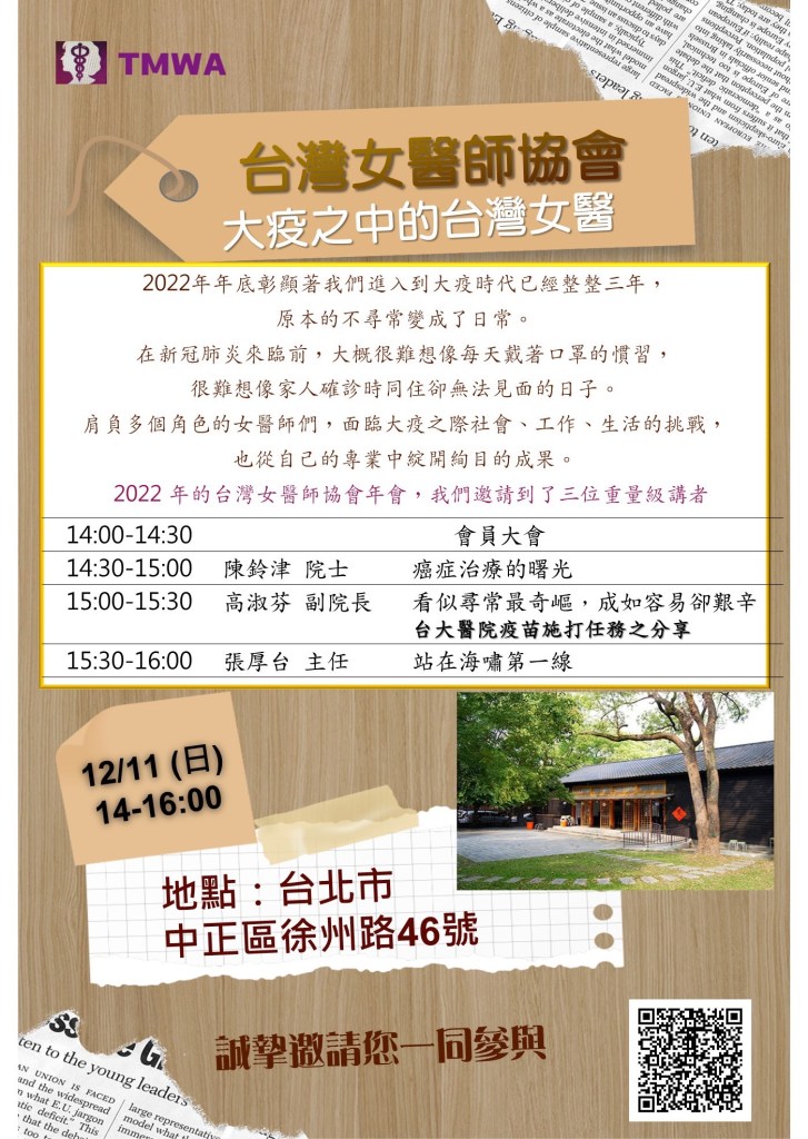 【年會】2022台灣女醫師協會年會:大疫之中的台灣女醫