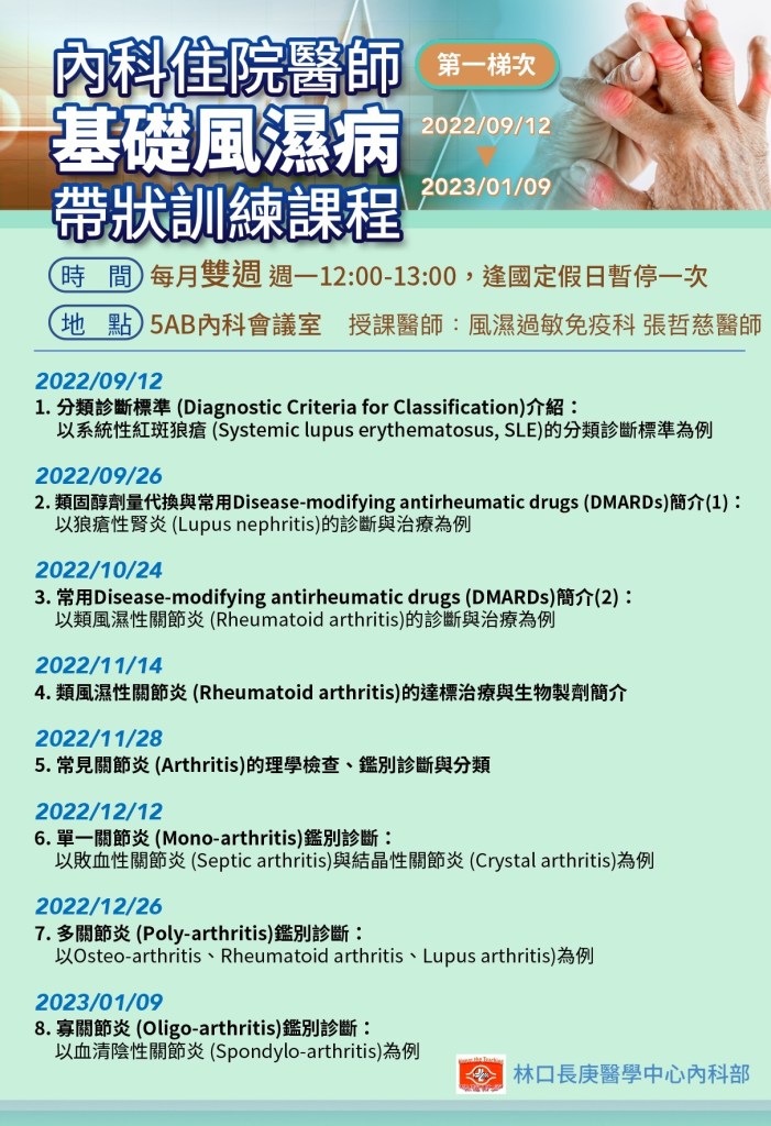 2022/12/12 (一) 內科住院醫師基礎風濕病帶狀訓練課程