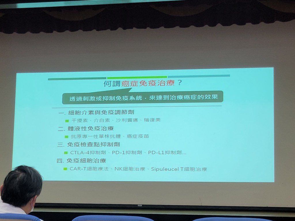 演講一開場由劉鳳炫主任做精彩的開場,先闡述了免疫療法與癌症免疫治療,引出本次演講的主題的主題immune checkpoint inhibitor,並提到了2018年諾貝爾獎的兩位得主在這方面的努力。