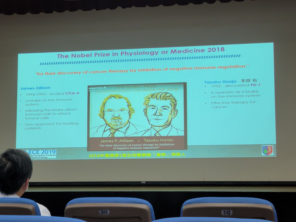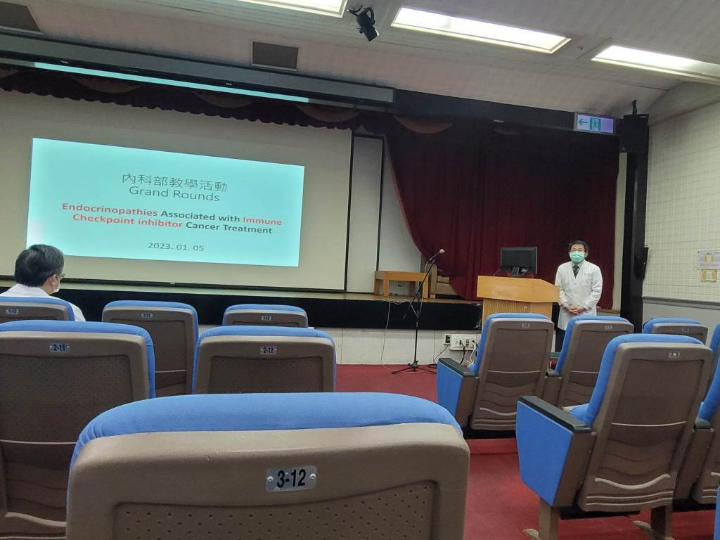 本週由新陳代謝科陳怡文醫師所主講的Grand round,主題是用immune checkpoint inhibitor進行cancer therapy時,所造成的內分泌器官病變。從上一週陳醫師所提供的重點簡報檔,可以了解到這個主題的深奧。