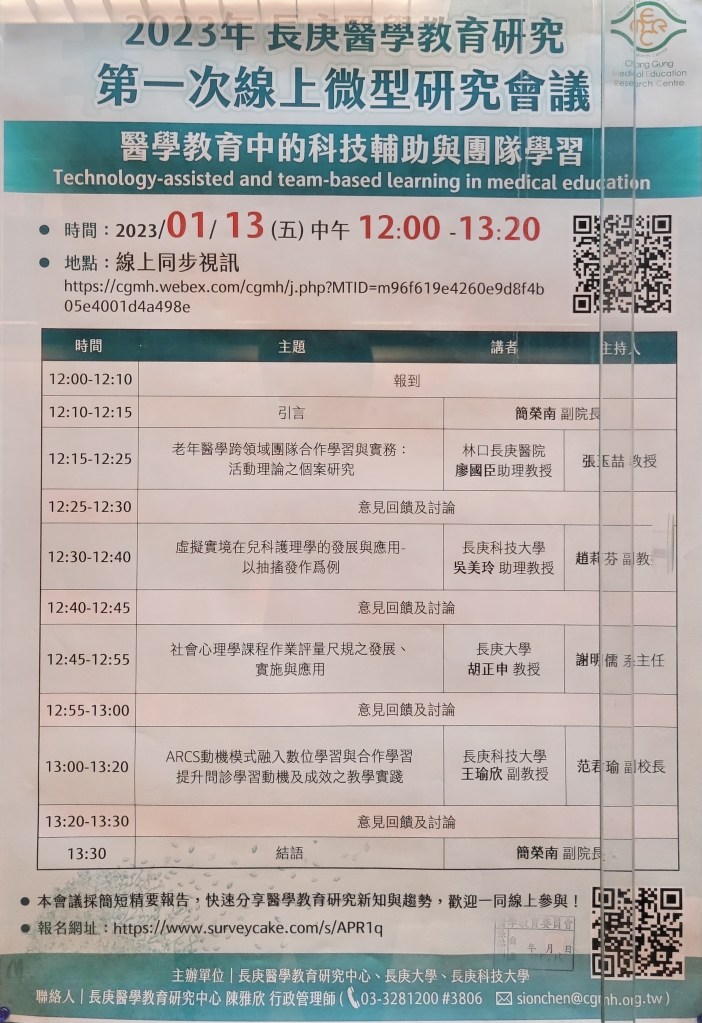 2023/1/13 (五) 推薦活動: 2023年長庚醫學教育研究第一次線上微型研究會議