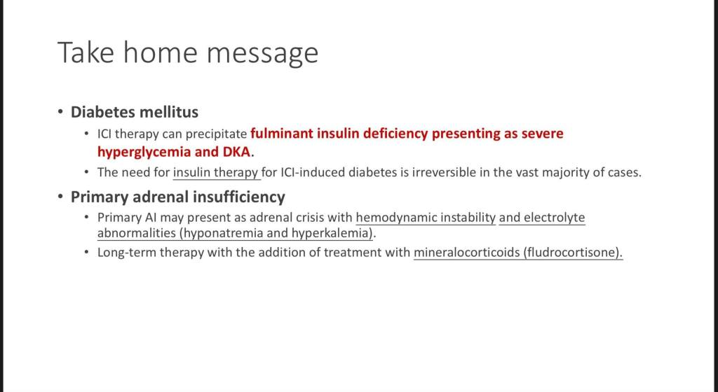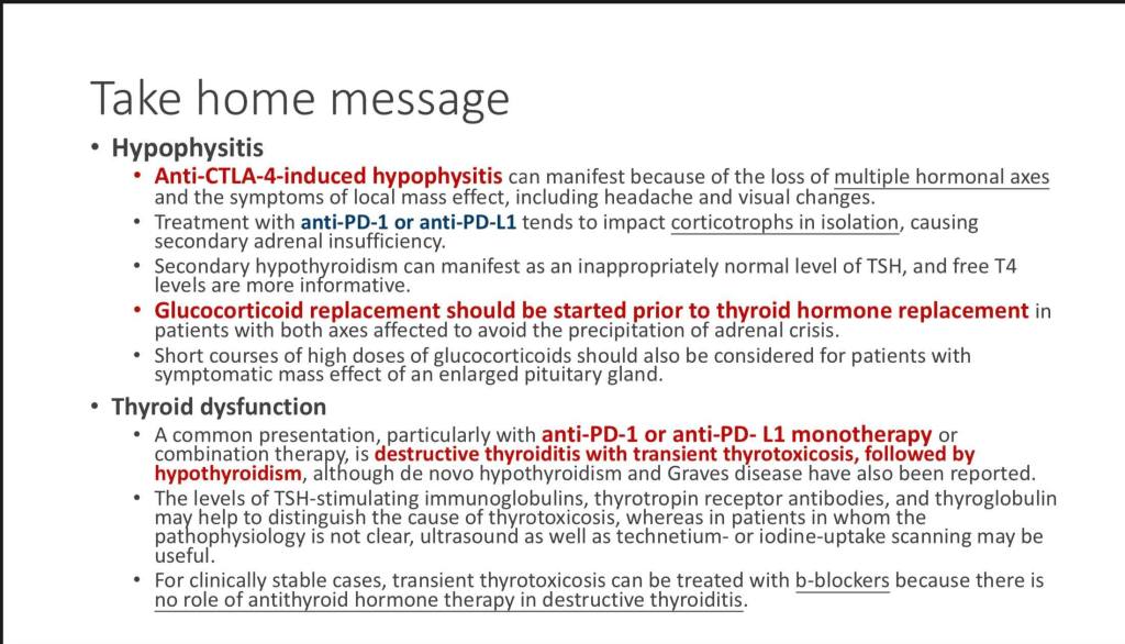 接下來陳醫師的演講幫大家重拾了內分泌系統的醫學知識,也闡述了immune checkpoint inhibitor對於內分泌系統所造成的影響。感謝陳醫師提供了take home message。