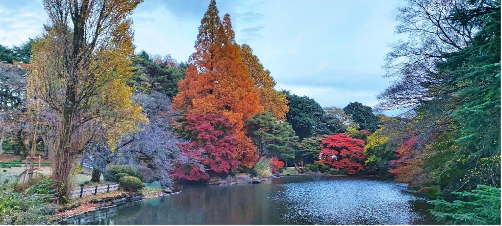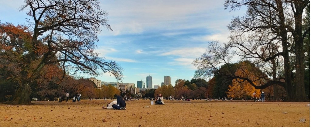 新宿御苑佔地58.3公頃。身為日本最大的國民公園,景色除了湛藍擁抱的大草原外還有精巧的山水庭園造景,秋天也是楓紅之時,兩者相映生輝。