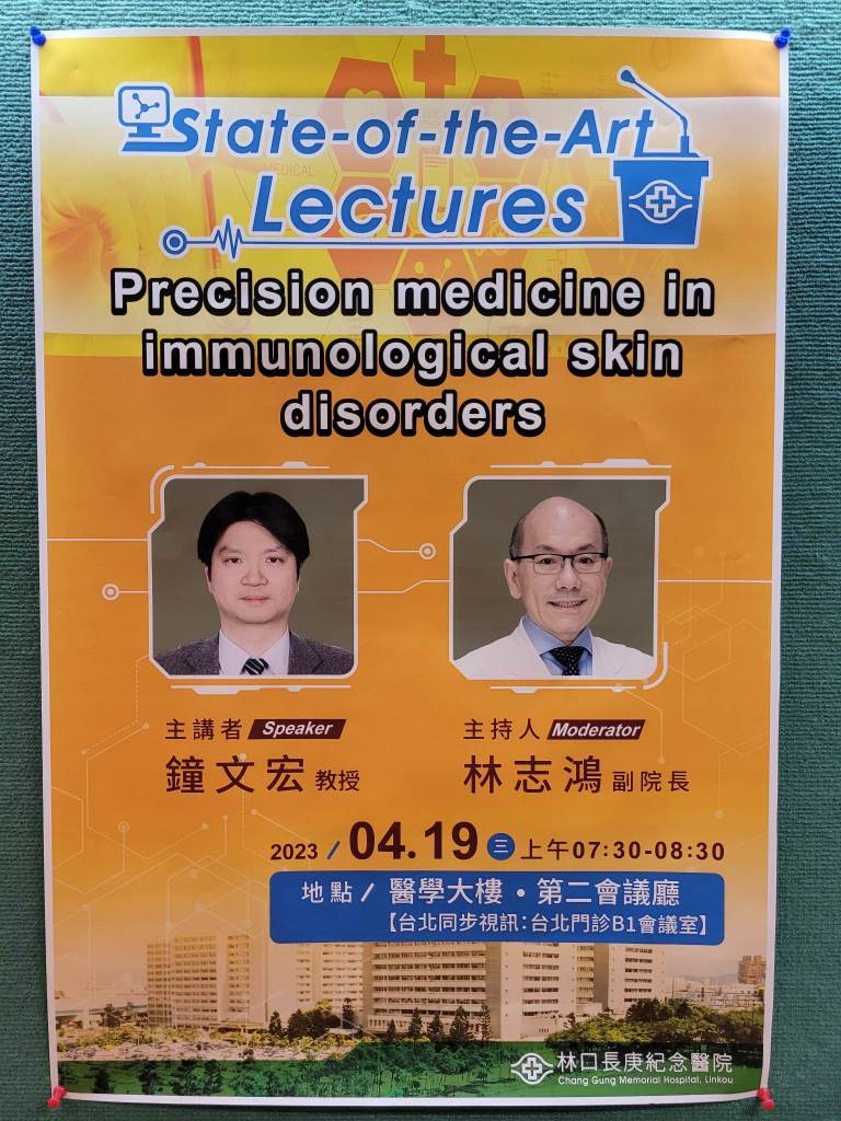 | 4/19(三) 07:30-08:30 第二會議廳 | 全院性演講: State-of-the-Art Lectures: Precision medicine in immunological in disorders 皮膚科 鐘文宏 教授/ 林志鴻 副院長 | 實體無視訊 |