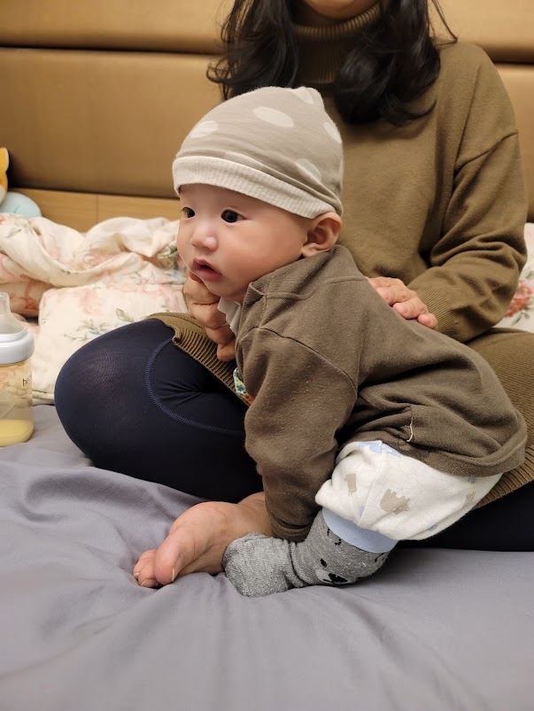 我家寶寶叫做昊承,小名是饅頭,目前剛滿四個月大,就在寫這篇好事分享文的當下剛學會翻身(歡呼!!)。雖然真的很累,基本上都沒辦法睡,就像每天都在值班,但是看到他的笑容,不知不覺都無所謂了。