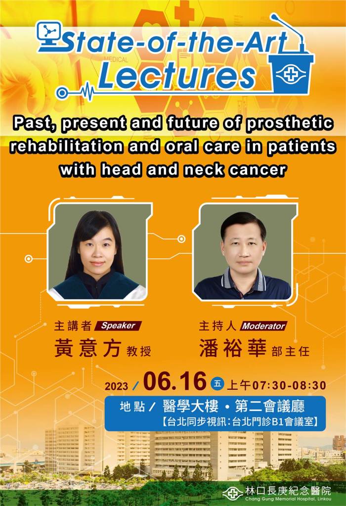 | 6/16(五) 07:30-08:30 第二會議廳 | 全院性演講: State-of-the-Art Lectures: Past, present and future of prosthetic rehabilitation and oral care in patients with head and neck cancer 義齒補綴科 黃意方 教授/ 牙科部 潘裕華 部主任 | 實體無視訊 |