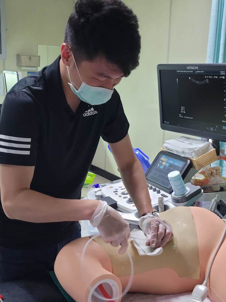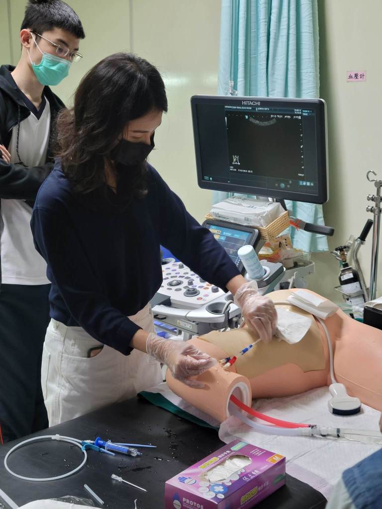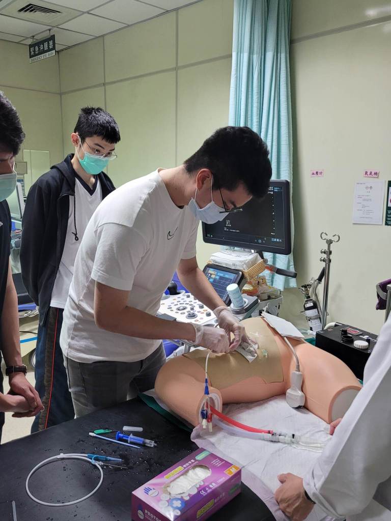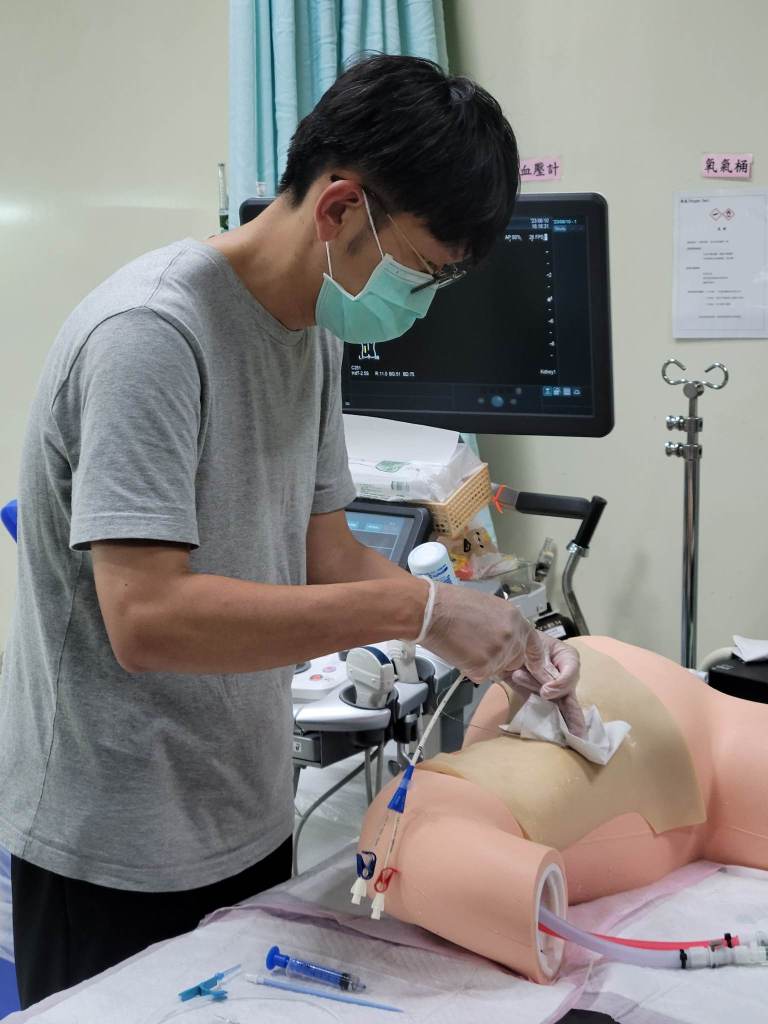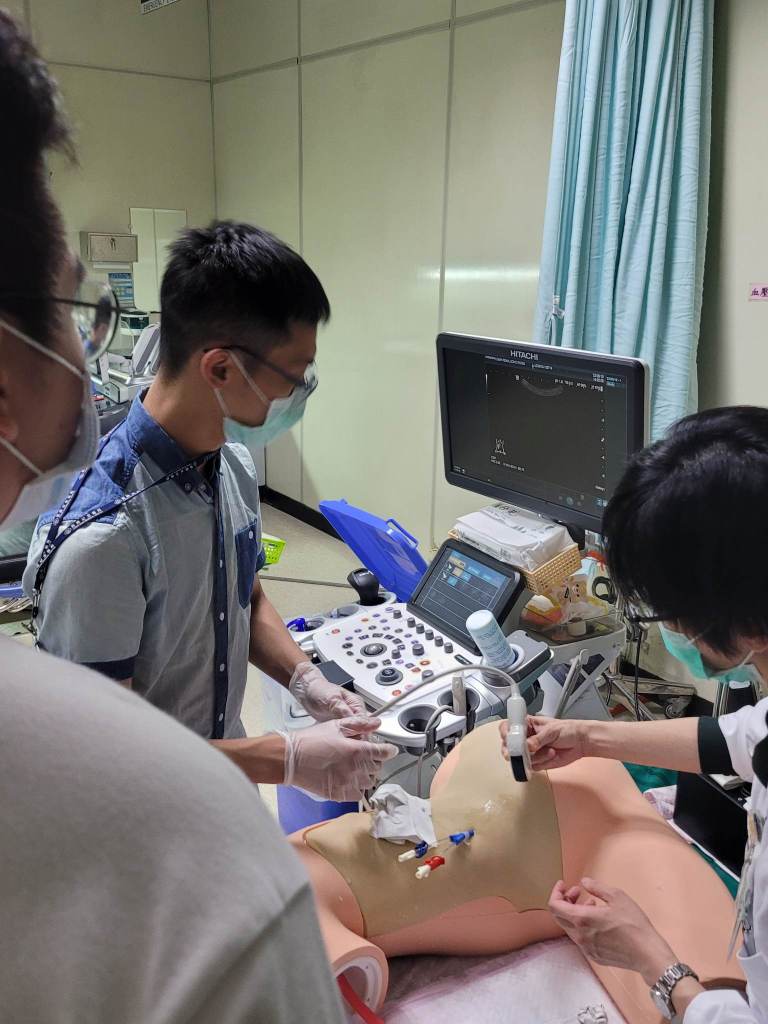 下午的課程是密集的超音波導引double lumen實作體驗,每個人都會在老師的協助下透過超音波對模擬假人(動脈真的會有pulse的假人)real time的施打double lumen。這個經驗對我來說彌足珍貴,記得之前在clerk的時候,就不時遇到學長姐打CVC不太順,不僅操作時間過長,不斷嘗試可能也增加併發症的風險。各種導管置入本身就是一個風險不低的處置,我很幸運能在學長的指導下成功施打CVC,但要我自己來,內心還是會害怕,把病人當作練習感覺也對病人非常不好意思。有了假人模擬的經驗和學會超音波的使用,我相信對每個人未來要打各種導管,無論有沒有超音波的協助,都有非常大的幫助!!
