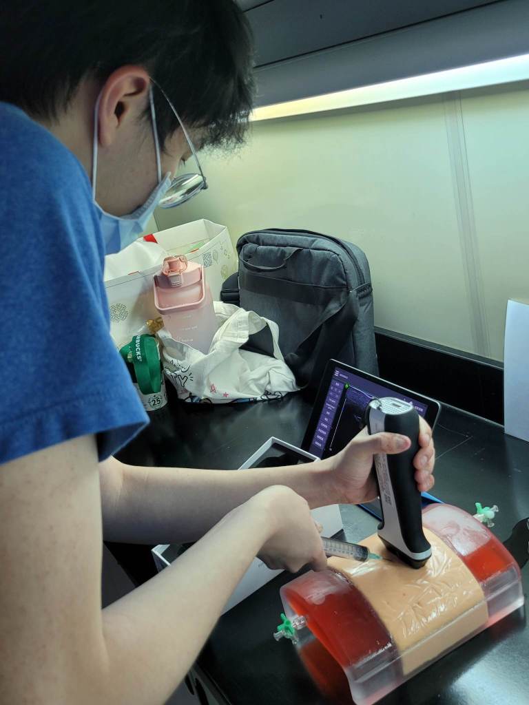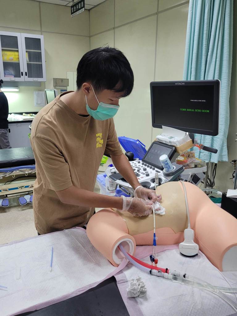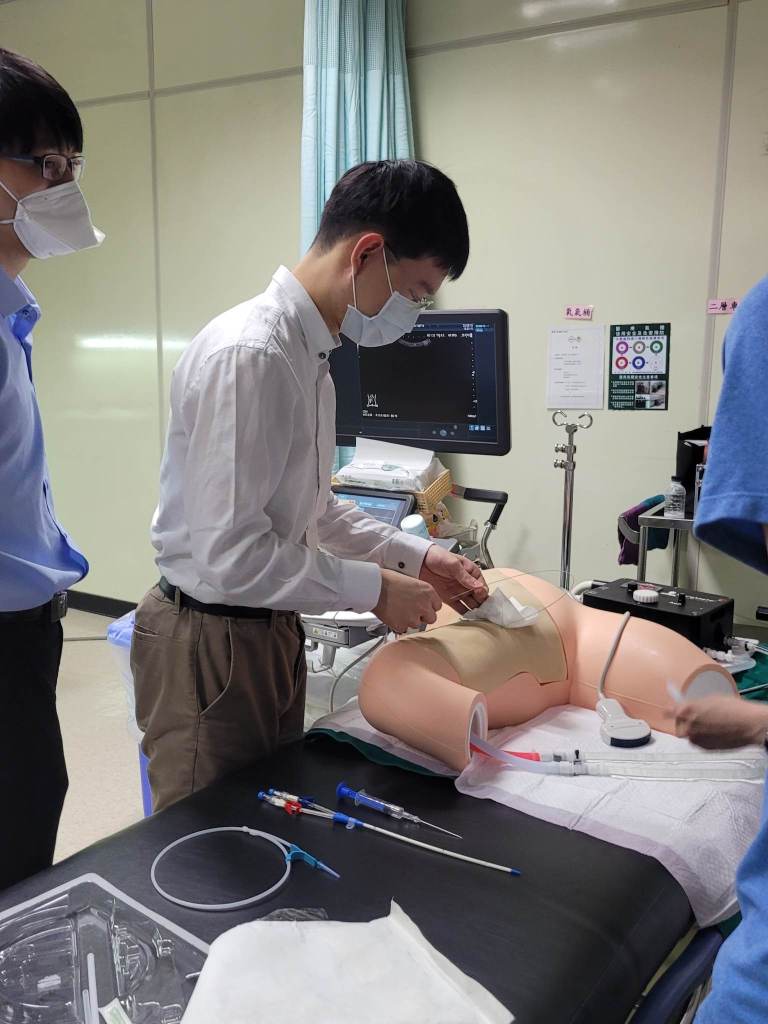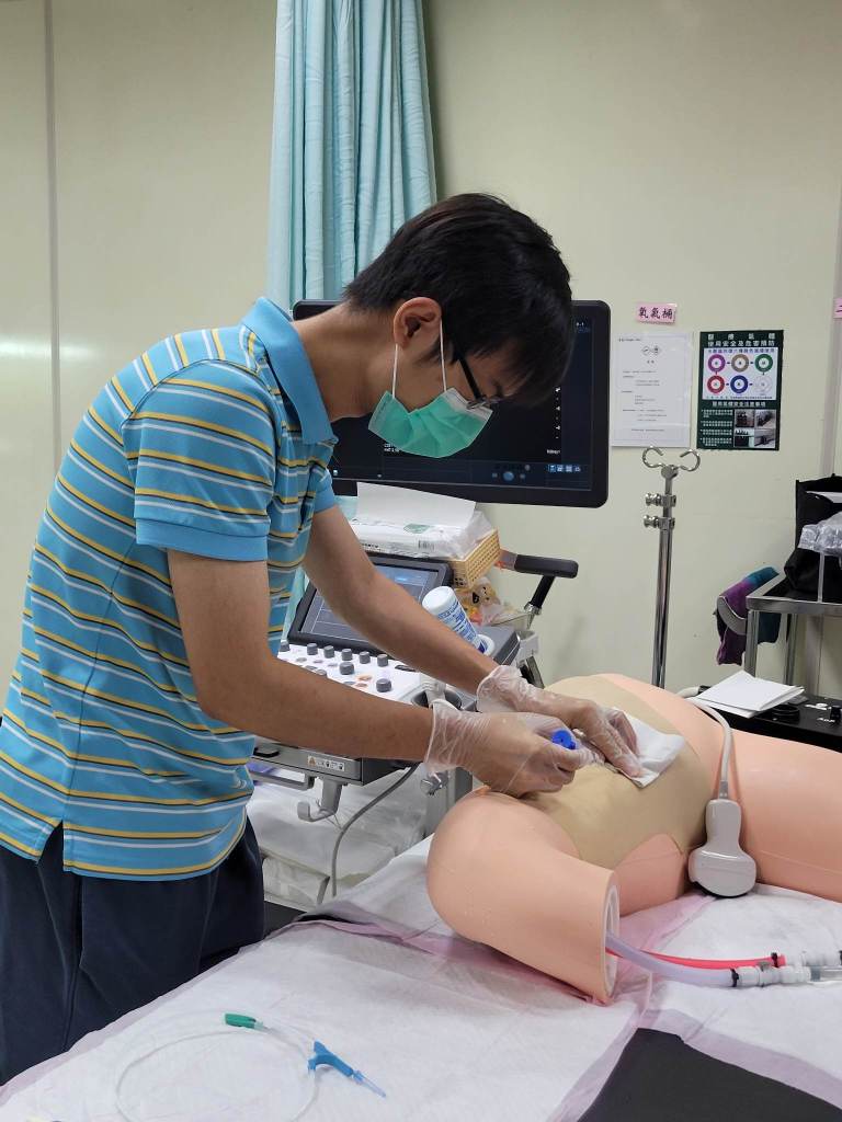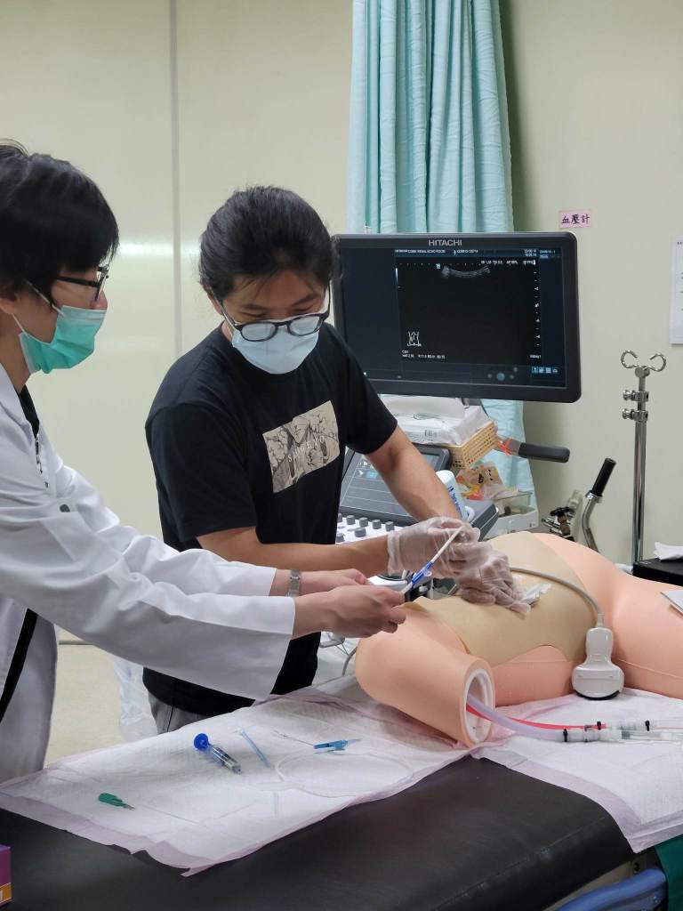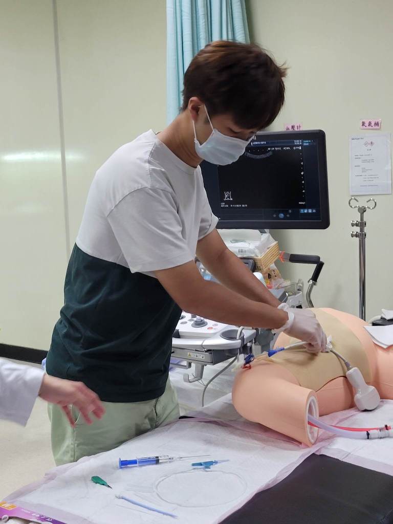 下午的課程是密集的超音波導引double lumen實作體驗,每個人都會在老師的協助下透過超音波對模擬假人(動脈真的會有pulse的假人)real time的施打double lumen。這個經驗對我來說彌足珍貴,記得之前在clerk的時候,就不時遇到學長姐打CVC不太順,不僅操作時間過長,不斷嘗試可能也增加併發症的風險。各種導管置入本身就是一個風險不低的處置,我很幸運能在學長的指導下成功施打CVC,但要我自己來,內心還是會害怕,把病人當作練習感覺也對病人非常不好意思。有了假人模擬的經驗和學會超音波的使用,我相信對每個人未來要打各種導管,無論有沒有超音波的協助,都有非常大的幫助!!