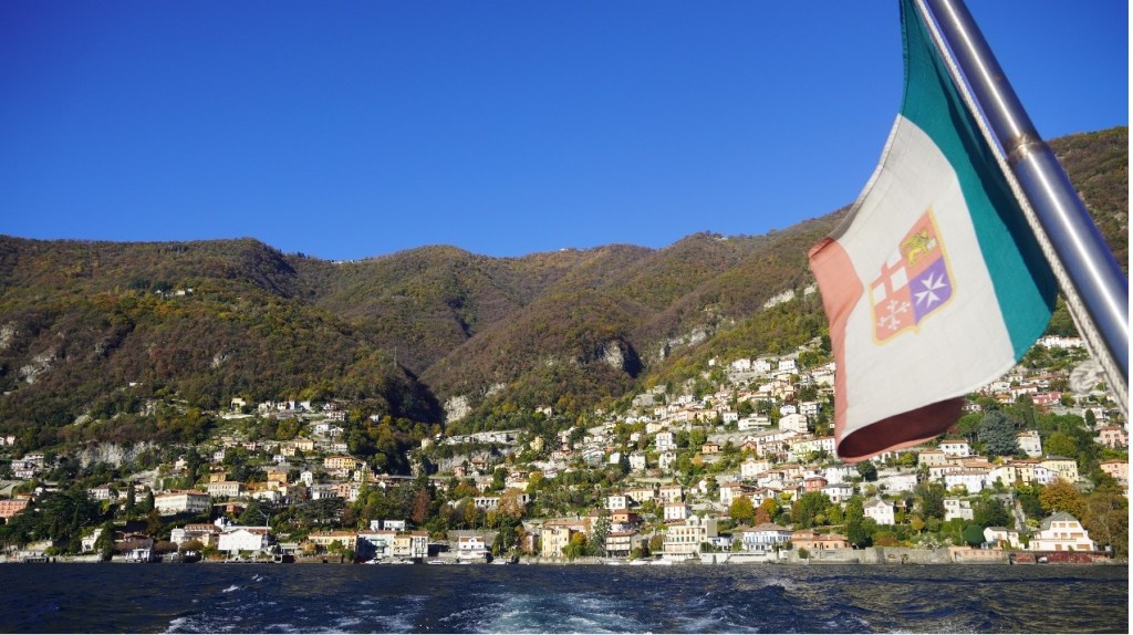 一下飛機就到了靠近瑞士邊界的科摩湖,它是阿爾卑斯山脈的冰蝕湖,搭著渡輪遊湖,迎面拂來的風好冷但風景超美。