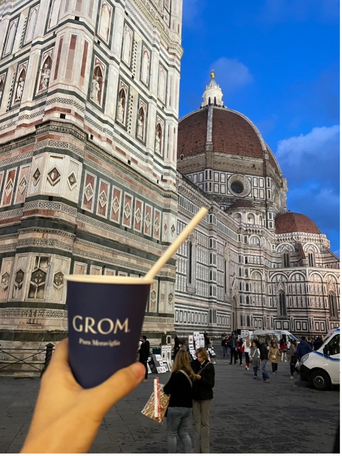 接著來到文藝復興的發源地—佛羅倫斯,相信大家對文藝三傑—達文西、拉裴爾、米開朗基羅應該都很熟悉了吧,但,你應該不知道梅第奇家族對吧,他們可是佛羅倫斯的土豪呢!美術館和裡面的館藏都是他們捐出來的,喔對了,廣場上的大衛像是複製品喔,真跡在美術學院內。附上著名地標聖母百花大教堂跟大推的冰淇淋結束這回合。
