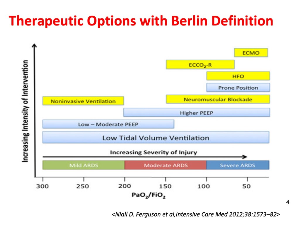 目前處置方式是針對致病原因加以治療,良好的保護性呼吸器設定(lung-protective ventilation strategies with low tidal volume and adequate PEEP)和俯臥(prone position),若仍然嚴重低血氧則可考慮rescue therapy,如ECMO(葉克膜)等。ARDS目前仍沒有良好指標可以準確診斷及預測疾病發展或惡化。未來方向可考慮以precision medicine方式,結合生物或臨床指標等將病人分群(subphenotypes),以期能及早診斷,預測疾病進展及治療來降低死亡率。