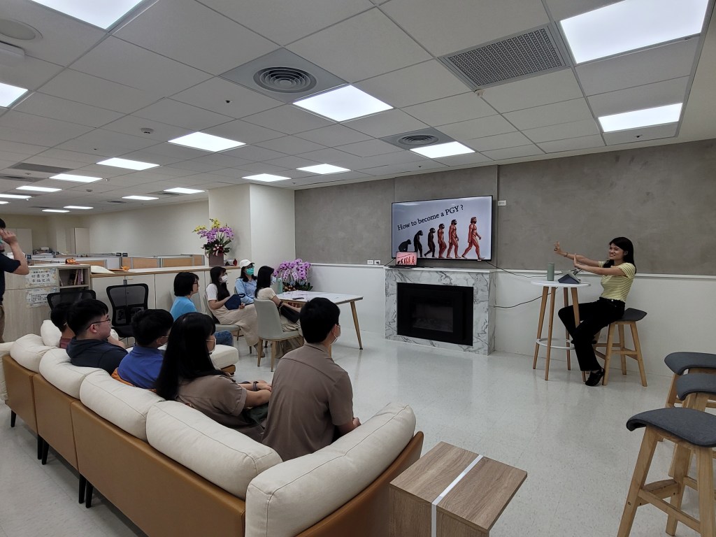 於7月11日晚上五點半初試啼聲,在綜合大樓三樓的內科部客廳舉辦,請到PGY2內科組郭怡珩醫師現身說法,傳授學弟妹不少重要心得。