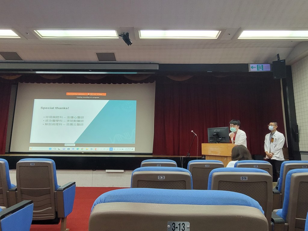 R3剛好碰到疫情爆發,大半的時間都在顧專責病房。雖然大部分的病人,可能都是因為其他醫療需求(腦出血、胃腸穿孔……),剛好又COVID PCR陽性才住進專責ICU,在那段時間還是有一些真的因為pneumonia呼吸衰竭插管進來的。在照顧這些病人的期間,發現有部分病人sputum culture長了mold,後來fungus culture長出Aspergillus的情形,這次提出來討論的這個病人就是其中之一,當時住在他隔壁的阿嬤也長了mold。先前看了一些文獻資料,知道COVID-19會增加IPA發生的機率,但是似乎沒有看到這麼年輕、而且共病症不多、藥物使用也單純的案例。因此有了想要拿這個case在MMC討論的想法,真的很感謝張瓊心學姐,才剛升主治醫師,就毫不猶豫答應我帶我準備這個case。