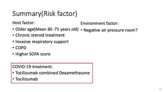 這個病人之所以一開始沒有當做IPA治療,是因為他當時的臨床狀況都在改善中,國外的文獻好像也很少看到這麼年輕的個案(他隔壁床的阿嬤,我們當時是長出mold就直接開始治療)。然而沒想到他後來會突然惡化需要再次插管,還好他對Voriconazole治療的反應很好,後來也成功改善出院。有了這次的經驗,回頭去想,或許當初第一次拔管前更應該謹慎評估,這也讓我有了檢討的方向,到底哪些risk factor是除了COVID本身之外,也會增加病人IPA的感染機率,搜尋資料整理的過程中,很感謝李明勳醫師,分享了許多他對這個case的想法,以及可以嘗試整理、檢討改善的方向。