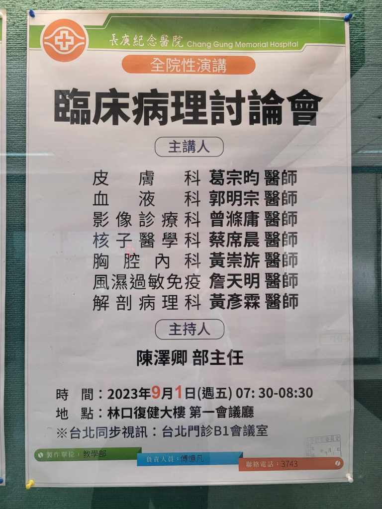 2023/9/1 (五) 全院性演講:臨床病理討論會