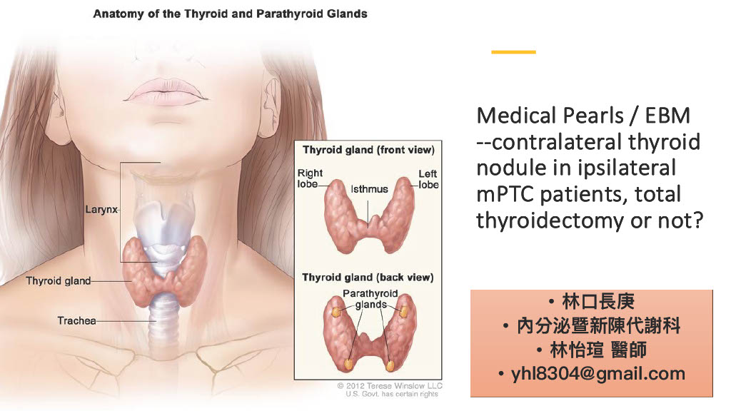 對於同側甲狀腺微小乳突狀甲狀腺癌患者的對側甲狀腺結節,是否需要進行全甲狀腺切除?以實證醫學的方法找出目前最適當的治療方式。
