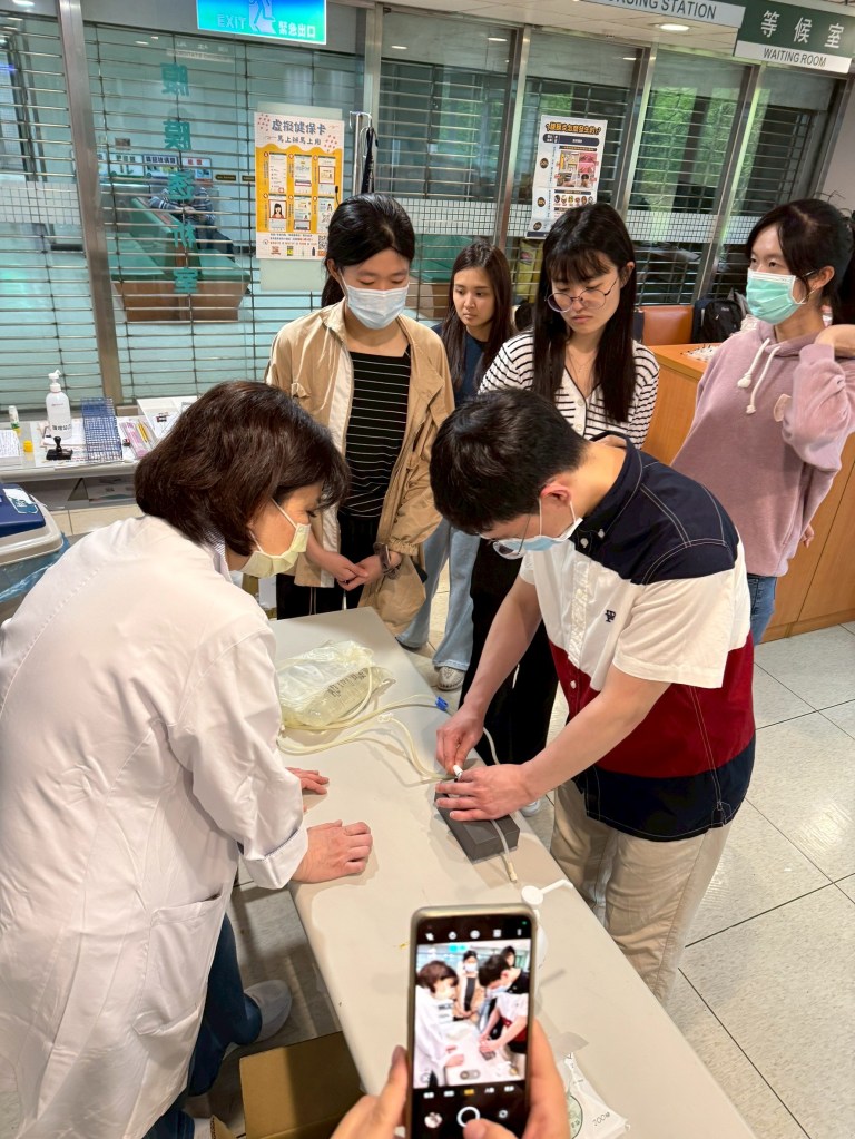 下午的實作課程讓我實際操作了 CAPD 與 APD 的更換流程,以及 PD 經皮植管術,對技術細節有更具體的掌握。親自體驗器械的操作,讓我更清楚如何正確引流、注入與滯留透析液,尤其在預防感染方面,維持無菌技巧至關重要。唯有自己親自理解,才明白病人可能會遇到什麼難處,不僅增加了同理心,更能設身處地的幫他們想解決方法。