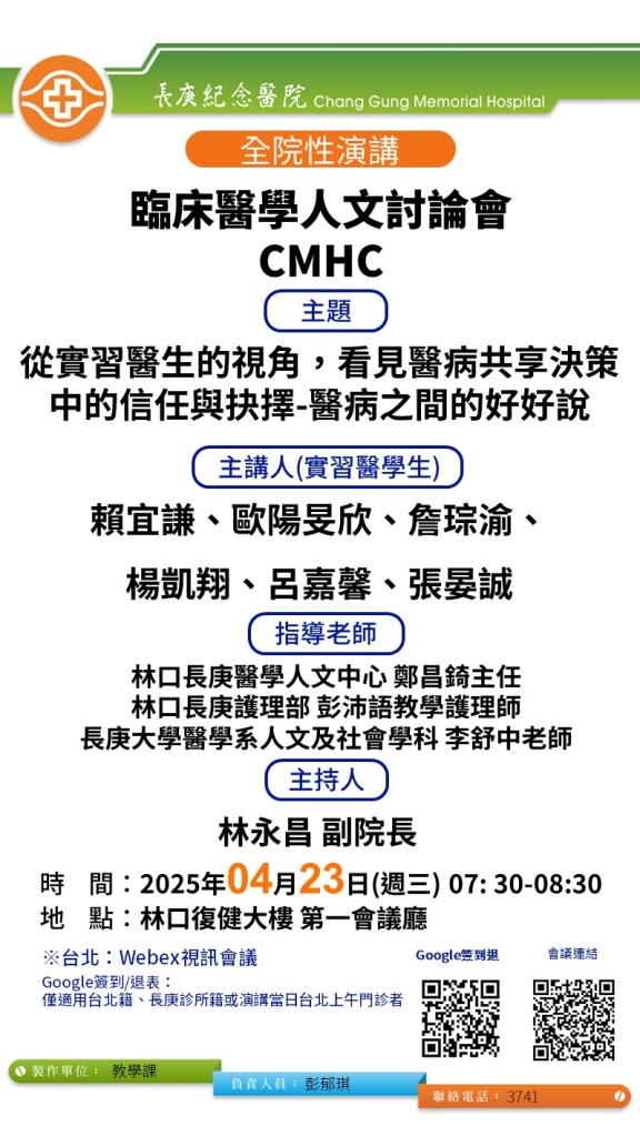 2025/4/23 (三) 臨床醫學人文討論會CMHC