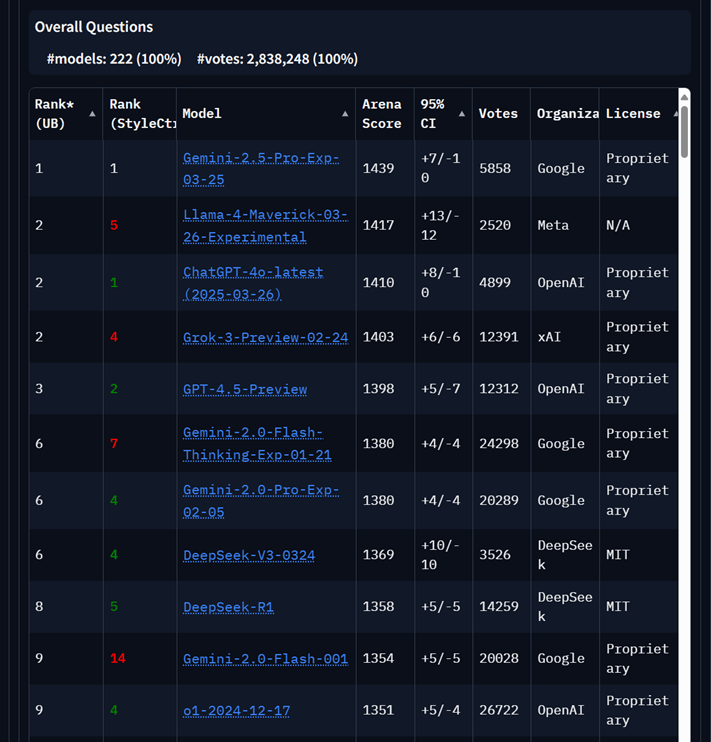 1, 3. LLM Leaderboard 2025