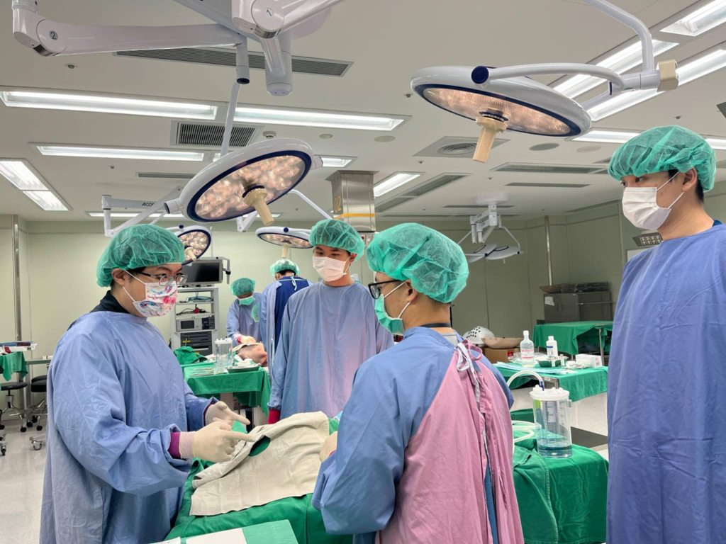 在這次工作坊中,不僅讓我們更熟悉了胸管放置的整個流程,從局部麻醉、皮膚切開、blunt dissection到胸管置入,每一步都得以實際操作與練習,對於一些容易忽略的小細節,比如切口的位置選擇、dissection的方式、角度,以及真實體會到那傳說中穿過肋膜時的手感等等,比起單純從影片中學習或是聽學長姐口述,老師及學長姐們也非常有耐心地帶我們操作,讓我們更能掌握這些細節。