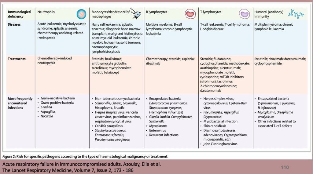 再者,隨著癌症存活率提升與新興療法問世,重症免疫抑制病人數持續增加,了解各種血液惡性疾病的免疫缺陷種類是非常重要的,而感染為血液惡性疾病中主要導致急性呼吸衰竭的原因,一旦需住進加護病房,死亡率非常高。診斷策略要依據免疫缺陷類型與臨床/影像特徵來規劃,要正確評估免疫缺損背景,有助於推測可能病原與選擇侵襲性或非侵襲性的檢查方式。期待未來能有更快速可以檢測病原菌的工具,讓這些病人能得到更準確更及時的治療。期待未來能有更及早更精準的辨識工具,讓這群病人能有更多存活和康復的機會。