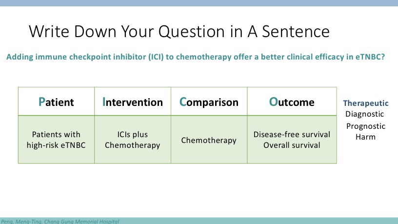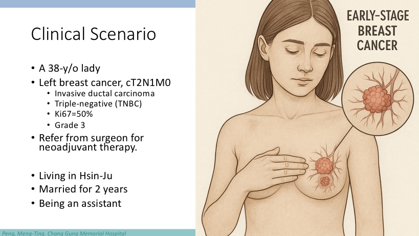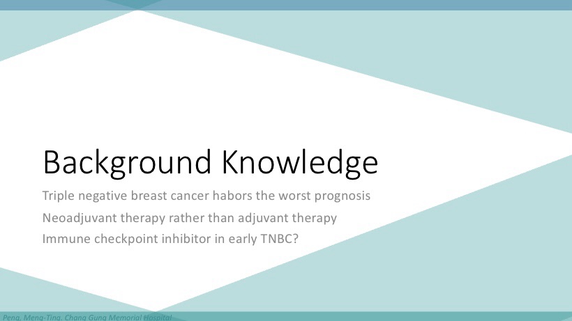 這是一個下週一診間就會遇到的臨床問題,要回答這個問題以前,必須先瞭解:一、高風險早期乳癌患者自一九九五年就證實手術後化療有效,目前以小紅莓與紫杉醇接續使用為標準治療;二、將術後化療調整至術前給予,有助於增進術後美觀、降低腋下淋巴廓清需求;三、免疫檢查點抑制劑為近年新證實對於晚期三陰性乳癌有效之藥物。在此三個前提下,大抵會希望知道免疫檢查點抑制劑與化療的組合,是否會比傳統的化療更加有效。