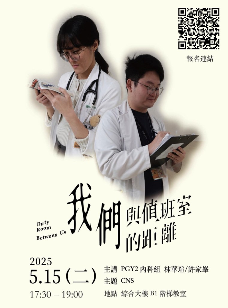 學姊也提醒,未來進入職場後,學習如何與其他醫護人員協作、確實下醫囑與交班、互相尊重與配合,是非常重要的一環。當對病人是否需要交班感到猶豫時,她建議:「心中有疑慮時,一律打電話交班!」並強調平時應確實完成病歷記載。最後,關於時間管理,學姊分享在臨床工作中,應優先處理好當前的醫療事務,待逐漸上手後,再進一步兼顧教學與研究,並努力在工作與日常生活之間取得良好的平衡。