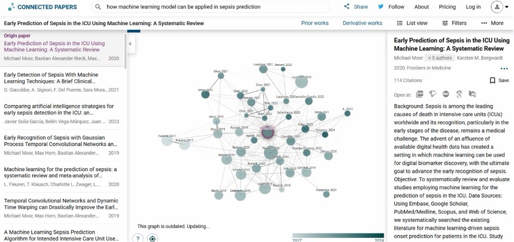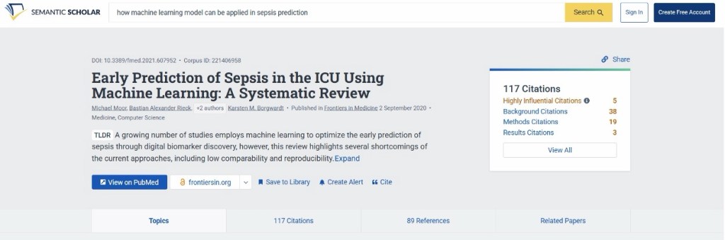 傳統的Google Scholar或PubMed搜尋依賴精確的關鍵字匹配,研究者經常需要嘗試多種關鍵字組合才能找到理想的結果。但現在,結合了AI的搜尋引擎已經到了允許用戶以自然語言提問的程度,不需要在完全知曉專業詞彙以及使用布林邏輯的連接詞串接的情況下,也能搜尋到我們想搜尋到的論文。以Semantic Scholar這個網站為例,筆者在用一般的描述性問句進行搜尋後,便能找到許多篇相關文章。點進去其中一篇後,甚至幫搜尋者做簡單歸納、引用與被引用情形,以及推薦相關但可能被遺漏的重要文獻。作為快速查找的工具,算是相當有潛力。