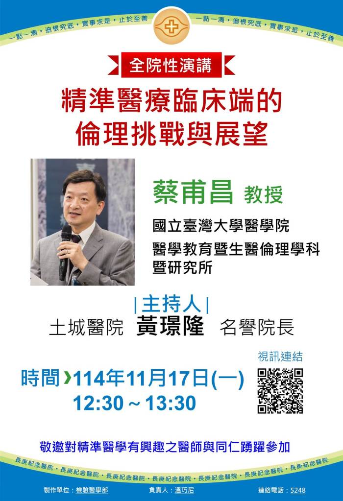 2025/11/17 (一) 精準醫療臨床端的倫理挑戰與展望