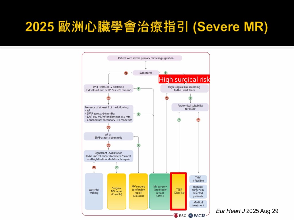 接下來的演講裡,林醫師舉了幾個常見的瓣膜性心臟病作為例子,例如風濕性二尖瓣狹窄(rheumatic mitral stenosis)臨床上的表現與治療方式,在嚴重且有症狀的病人狀況下,若瓣膜本身結構良好,PBMC(percutaneous balloon mitral commissurotomy)有著class I的indication,醫師的簡報中也分享了這項技術的久遠歷史,於1982年日本井上寬治醫師發明的Inoue balloon技術沿用至今,可算是劃時代的發明!