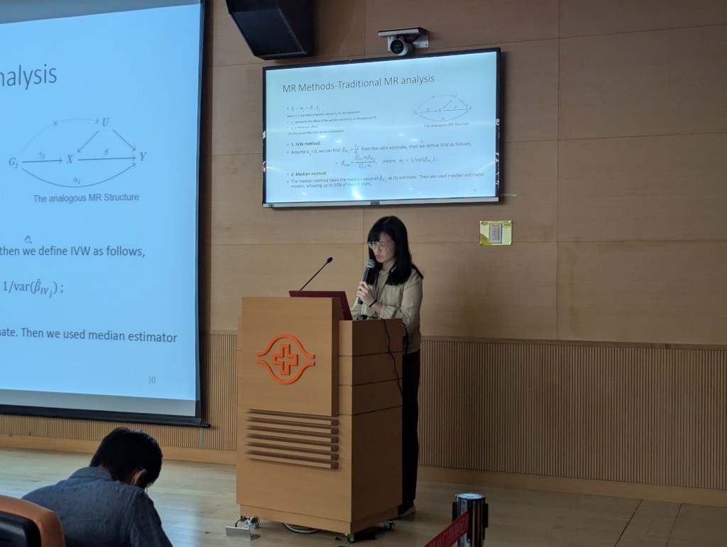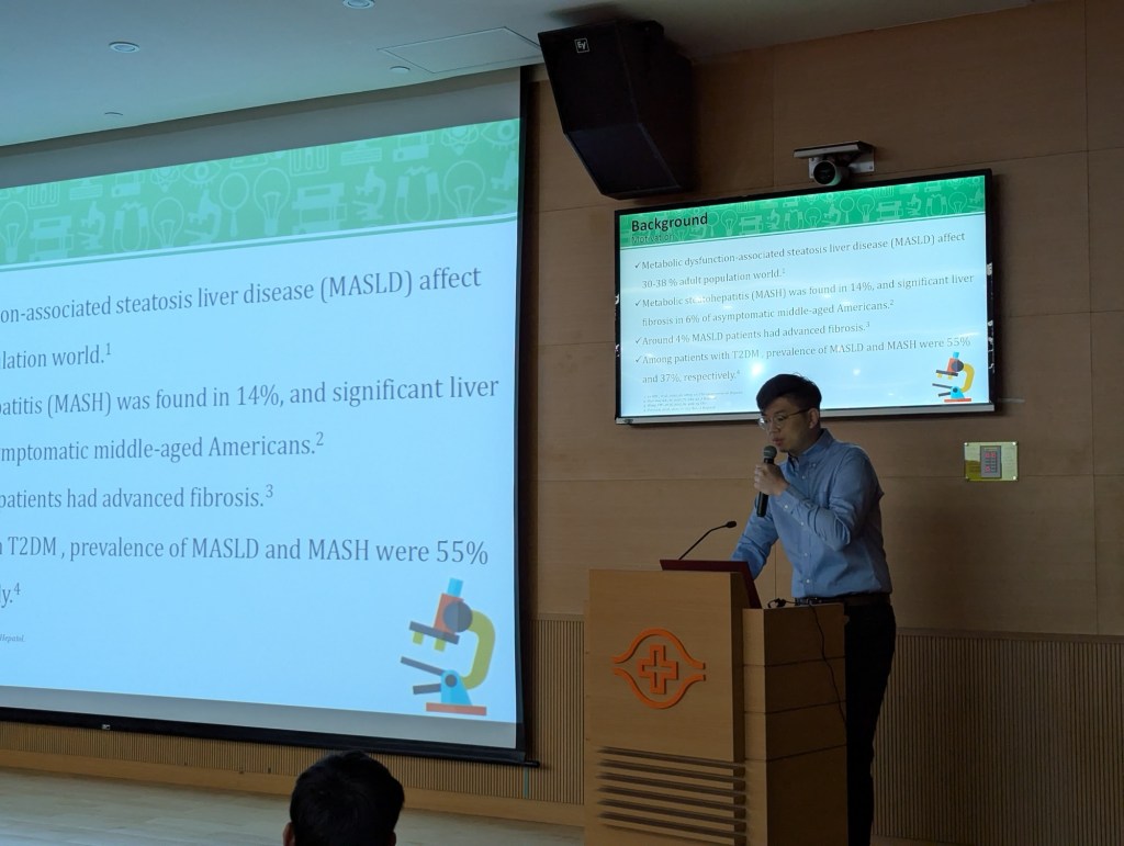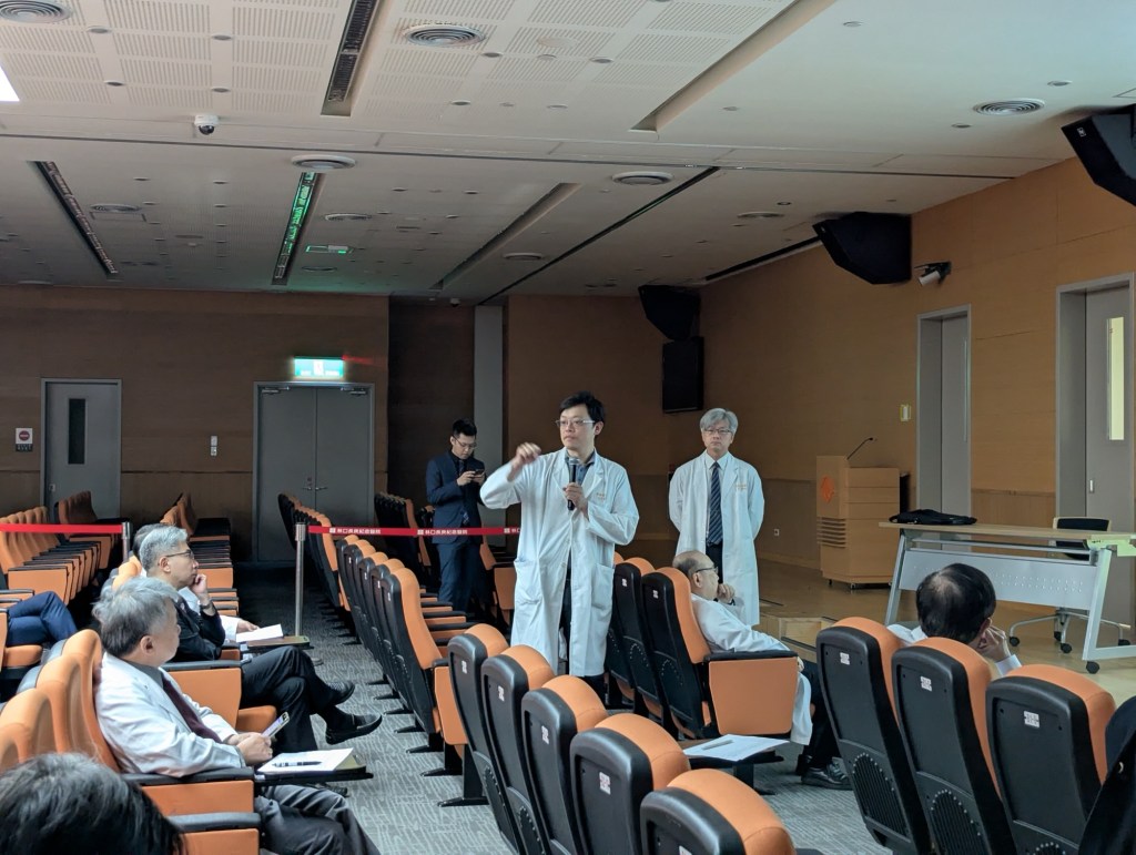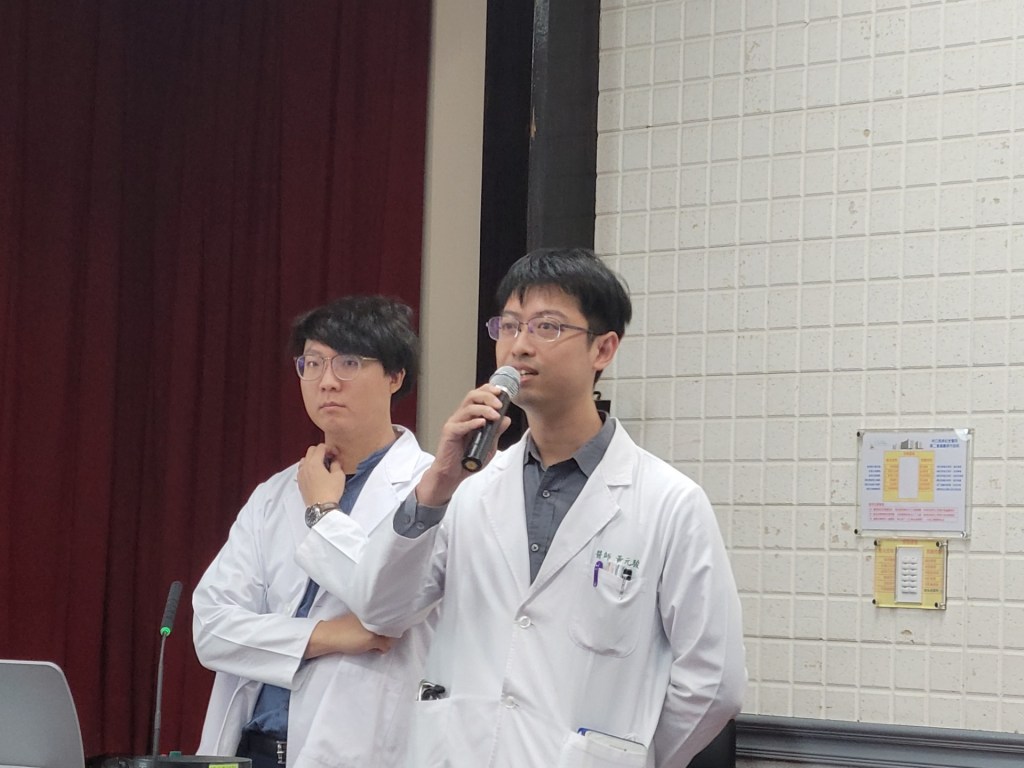 上半場首先由謝彝中醫師以「血清 HBcrAg 與肝細胞癌之關聯性」揭開序幕,一開始便引起熱烈討論;接著由風濕免疫科宋昭榕醫師、陳孟萱醫師先後報告,分享運用 Mendelian randomization 進行之研究成果。其後,陳昱廷醫師嘗試為糖尿病病人的肝纖維化建立改良之診斷流程;馬立宜醫師探討腹膜透析合併心衰竭病人使用icodextrin 所造成的影響;最後由黃元駿醫師呈現本院第三期胃癌病人在接受 adjuvant chemotherapy 後的治療成效。