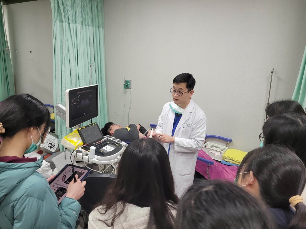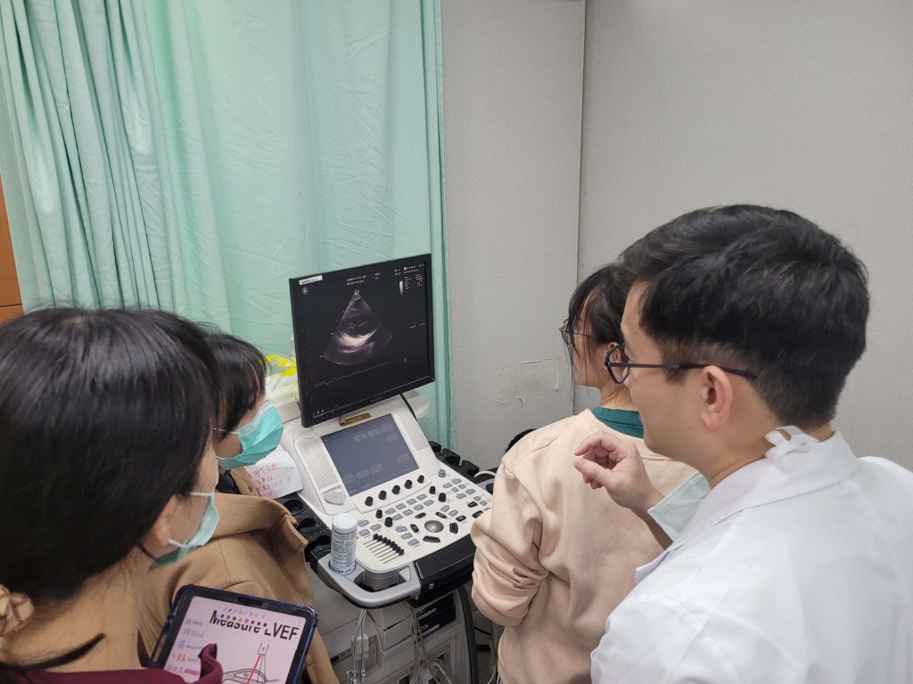 這次內科部舉辦的「內科知音-心臟超音波課程」,由徐子哲醫師教導大家使用心臟超音波探頭去觀察,主要是執行 long axis, short axis 以及 apical 4 chamber view 三個面向。