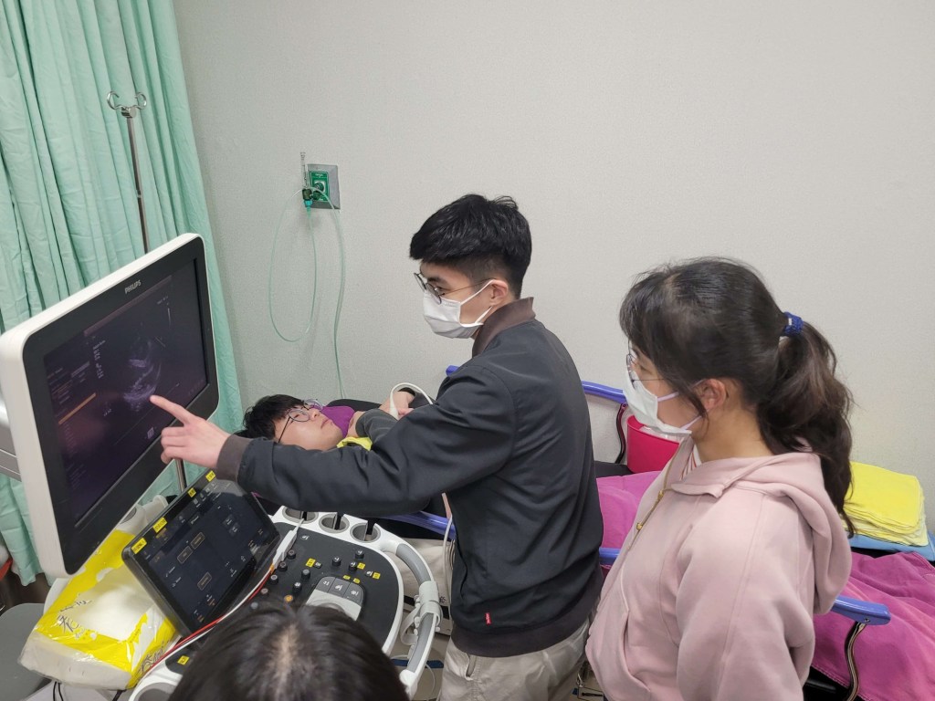 本次被操作的醫學生是相當健康、landmark也十分明確的標準病人,但在操作過程中仍然還是有不確定自己是否操作正確的疑惑,幸好有老師能夠及時在一旁提點與手把手教學,對於操作技巧會更有把握,也更知道如何快速地搜尋到想看的畫面,期許自己在學會這些技巧後未來能實際操作於各形各色沒那麼標準的病人身上。