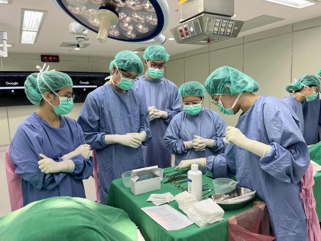 另外,這堂課難得的是能在大體老師上實際練習,這些寶貴的機會讓我能從單純觀摩,跨出一步到親手操作。像是選擇incision位置、爬肋骨、在Kelly dissection之後能順利順著tract把胸管置放到正確位置,讓胸管往肺尖引流氣體等等,也久違的練習tie線。回想四月與十一月的兩次練習,確實讓我對未來在臨床上獨立執行胸管置放更具信心,雖然心裡仍難免緊張,但至少多了一些踏實感與準備。
