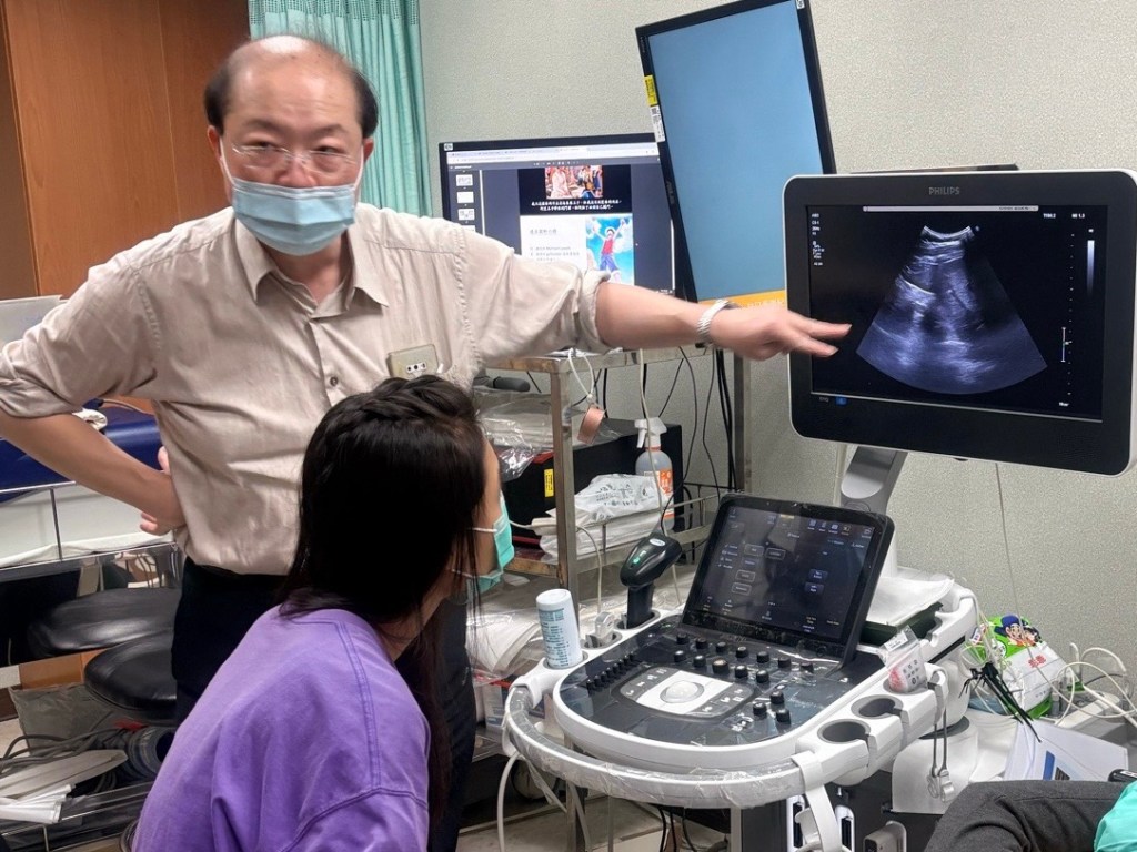 在操作標準病人時,我更深刻體會到「按圖索驥、胸有成竹、熟能生巧」的意義。每位學員都必須依序找到 Morrison’s pouch、掃出 gallbladder 並測量壁厚、量脾臟大小以及測量 CBD 等任務。以 gallbladder 為例,除了要看到完整形狀之外,更要注意其 wall thickness、是否有sludge、polyps 或 adenomyomatosis 等變化。這些影像特徵以前只在課本看過,但在實作中親手掃到時,理解程度完全提升到不同層次 。
