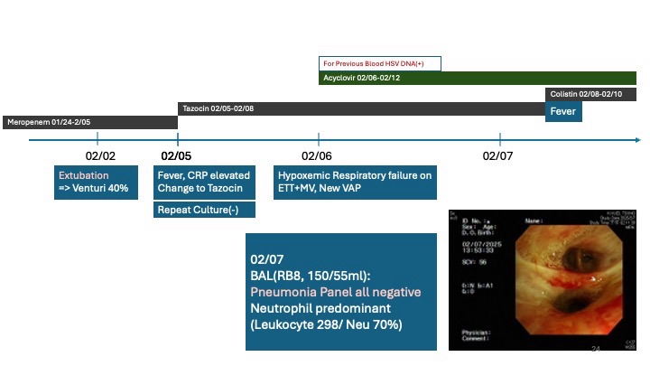 後續血液培養確認為肺炎鏈球菌菌血症,亦突顯 urine antigen 在重症感染病人中,作為快速診斷工具的臨床實用性。抗生素治療方面,團隊依培養結果進行適當降階,但因病程中出現反覆高燒與新發醫院性肺炎(HAP),最終仍需轉為針對 MDRO 的 combination therapy,顯示重症感染中抗生素決策在「即時控制感染」與「降低抗藥性壓力」之間的選擇。