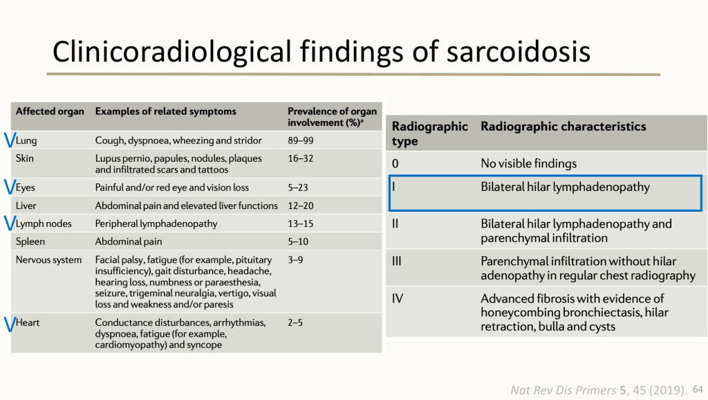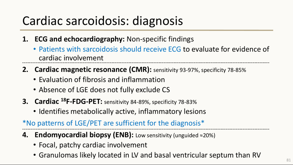 另外,由於我之前做過 pulmonary sarcoidosis 的報告,所以在看到她早期的顏面神經麻痺、嗅覺下降、前房炎、胸部 CT 肉芽腫等線索時,會有一種「串在一起了」的感覺。這種熟悉感讓我意識到,多系統角度看病真的很重要,而 sarcoidosis 又是最典型會跨器官表現的疾病之一。從肺、眼睛到心臟的連續演變,在這個案例中展現得非常典型,也非常具有教育意義。