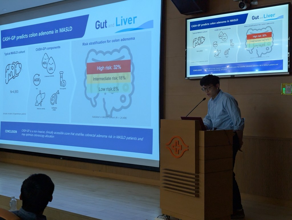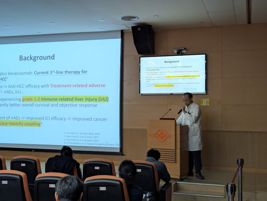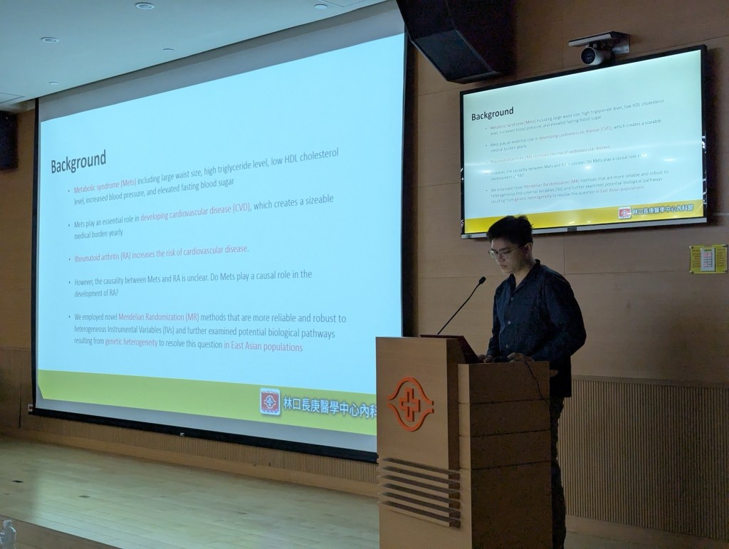 下半場則同樣精彩。黃振洋醫師報告馬兜鈴酸相關突變與腎細胞癌之關聯性;吳泰錡醫師分享肝癌病人接受atezolizumab 聯合 bevacizumab 治療時,免疫相關肝炎與腫瘤治療反應之關係。徐振荃醫師探討慢性腎臟病(CKD)對慢性阻塞性肺病(COPD)病人預後的影響;詹天明醫師則分析抗核抗體(ANA)在類風濕性關節炎中的角色;游仁醫師嘗試建立代謝症候群病人罹患大腸腺瘤(adenoma)風險之預測模式;壓軸由吳聲旻醫師報告代謝症候群與類風濕性關節炎之間的關聯性。