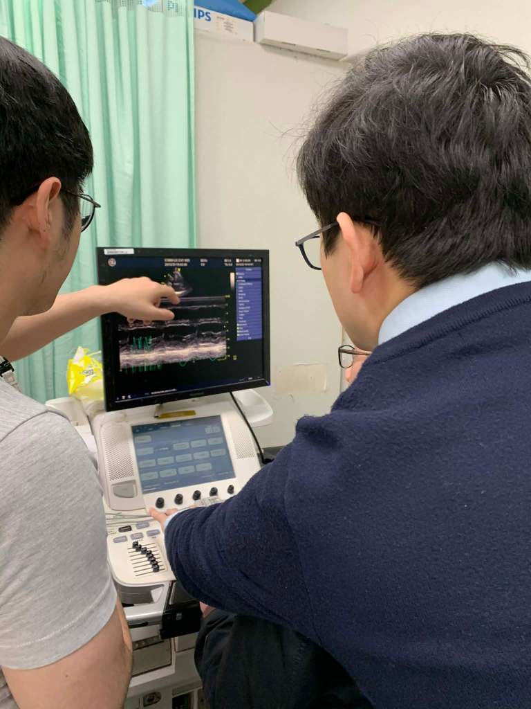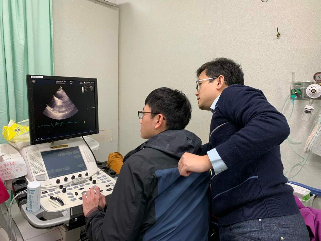 在心臟超音波的課程中,老師從最基礎的探頭特性與握法教起,並詳解Basic views 的定位技巧。令我印象最深的是老師分享的操作竅門,例如在Parasternal long view換至Parasternal short view時,先將Mitral valve置於畫面中央,再順時針旋轉90度並持續確認mitral valve在螢幕中間,位置一跑掉就可以立刻修正。這種細膩的教學,讓初學者比較可以克服操作時的挫折感。在測量LVEF的段落,老師細心引導我們辨別肌肉與腱索的邊界,並與我們討論測量的線應該從哪裡拉到哪裡。此外,老師更加碼補充了Simpson’s methoed以及TAPSE的測量原理,讓我們對左心與右心的收縮功能量測有更全面的了解。對PGY而言,評估Shock病人的Fluid status是一大挑戰。透過本次課程我們練習了IVC管徑測量,讓我們日後在面對問題時多了一項強而有力的評估工具,提升臨床決策的信心。