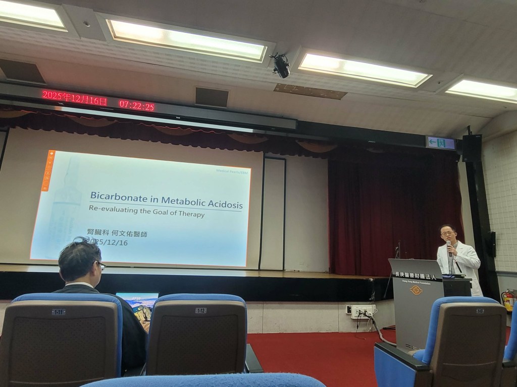 演講內容以case為出發點,分析在一位動脈血分析有metabolic acidosis的病人身上,是否該使用sodium bicarbonate。Severe metabolic acidosis從病理生理、如果未矯正可能的臨床危害,到使用bicarbonate治療策略以及可能帶來的adverse effect,去重新檢視這項我們在臨床上習以為常的處置決策是否合宜。報告中也有提到造成酸中毒本身的病因有很多種可能性,提醒我們治療時不能只專注於數值矯正,而忽略背後的病因與整體生理影響。