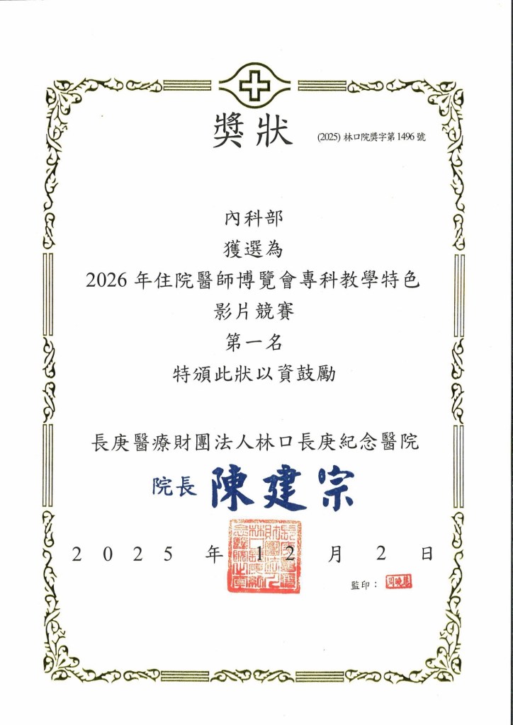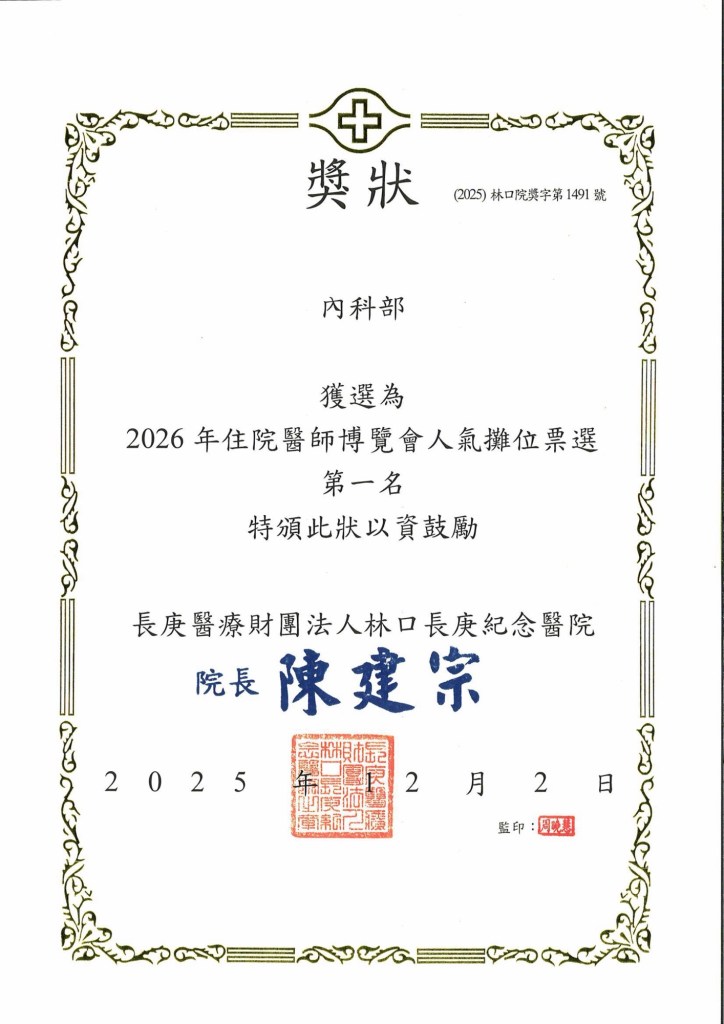 恭喜內科部在2026住院醫師博覽會中獲得影片競賽及人氣攤位票選第一名!謝謝所有同仁的用心準備才能獲得如此佳績!