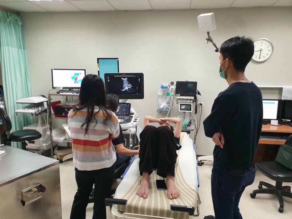 這次我參加了內科部安排的腹部超音波課程,在短短一個小時內,重點學習腹部器官的基礎掃描與辨識,內容涵蓋肝臟、膽囊、脾臟以及胰臟的初步認識。課程特別邀請兩位醫學生學弟擔任助手,讓我們能在真實的人體條件下練習,這樣的安排對學生而言格外珍貴。