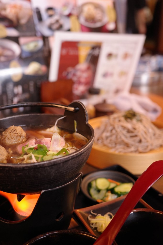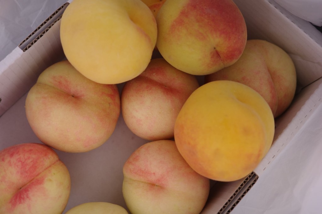 就如同詩人松尾芭蕉來到山寺時,寫下了「閑さや岩にしみ入る蝉の声」的俳句(譯:寂靜山中,蟬鳴聲也滲入岩石)。那天很幸運的是,雨在我們下山之後才漸漸大了起來,而我們也順勢躲進「焰藏」吃蕎麥麵,在爬完一千多階後,即使很丟臉地雙腿發抖,但喝上熱騰騰的鴨肉煮配上蕎麥麵,真的是太幸福了!最後,再意外買到10顆500日幣的水蜜桃,實屬幸運!(可惜不能帶回台灣XD)