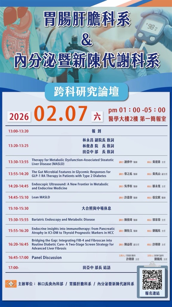 不管是對胃腸肝膽 × 內分泌暨新陳代謝有興趣的,或只是想多聽、多看,增加一些臨床與研究新知,都很歡迎來聽聽看喔 ✨