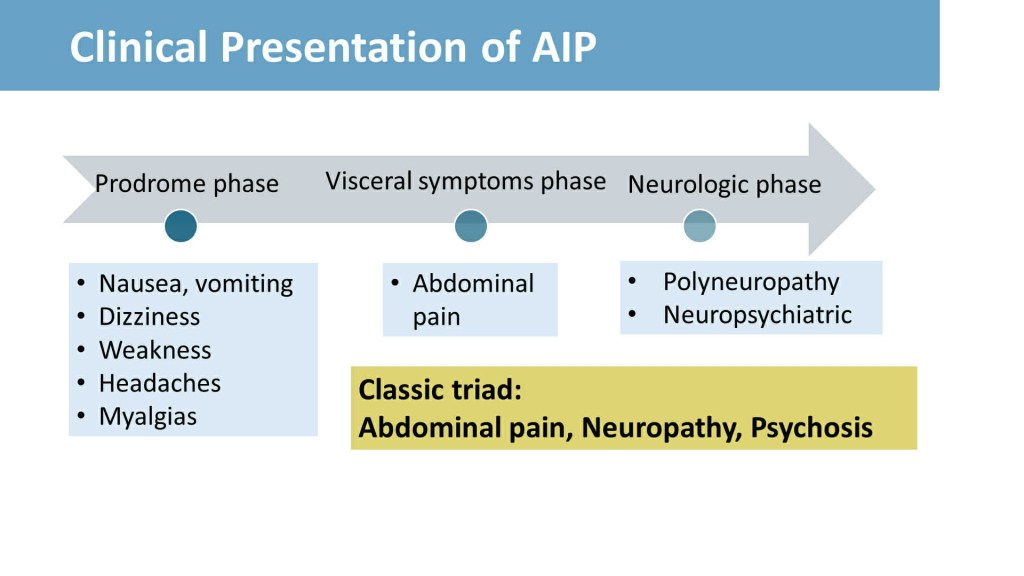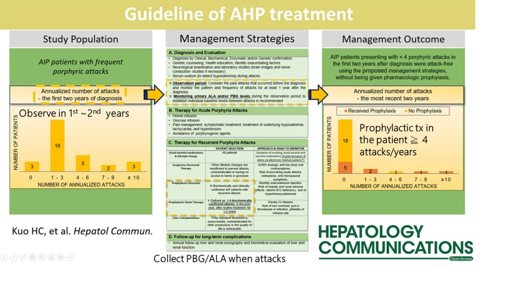 這次的Mortality and Morbidity Conference是以一位急性間歇性紫質症(AIP)病人的案例做分享。整個病程從一開始反覆腹痛,到後來進展成嚴重的周邊神經病變,甚至四肢癱瘓、呼吸衰竭,讓我對這個少見但潛在很嚴重的疾病有更具體的認識。