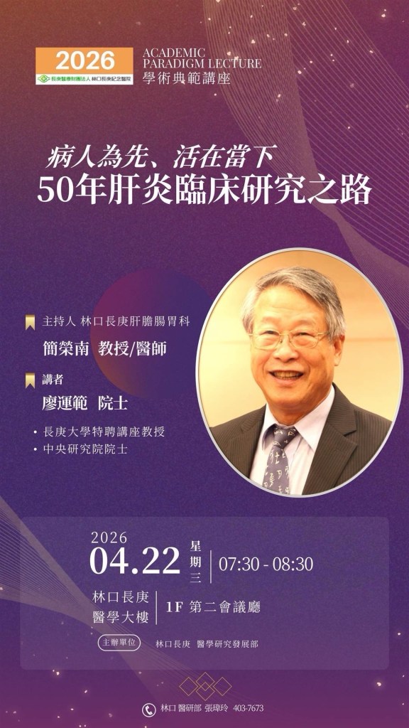 - 地點: 林口長庚醫學大樓 1F 第二會議廳
